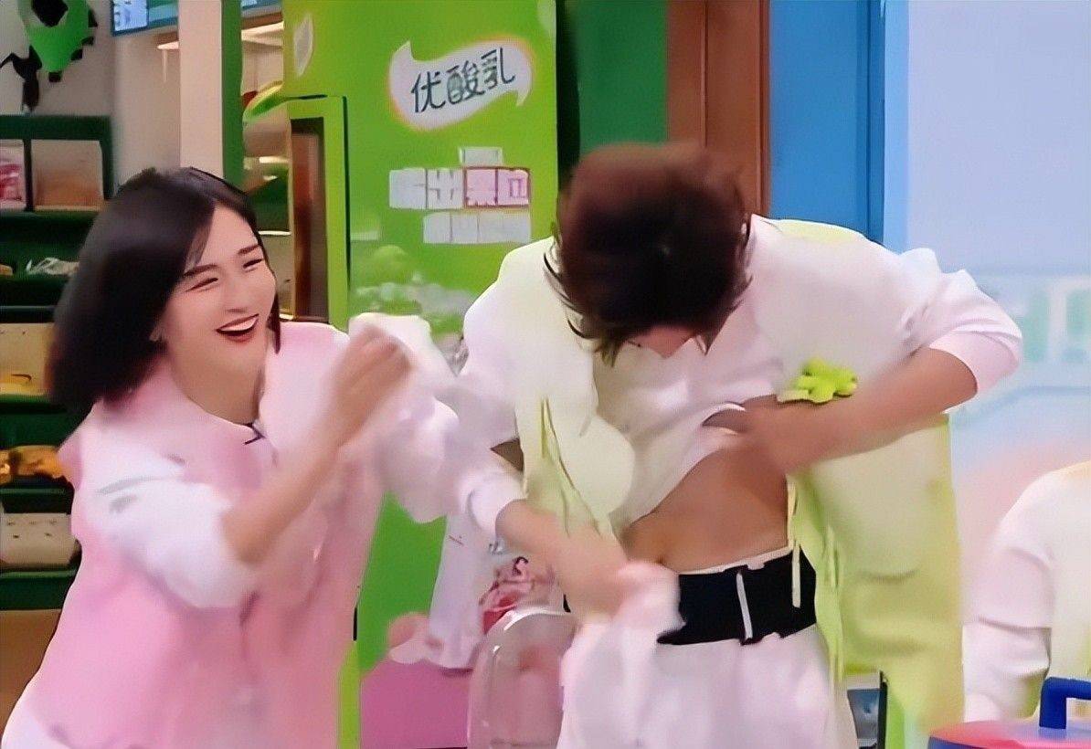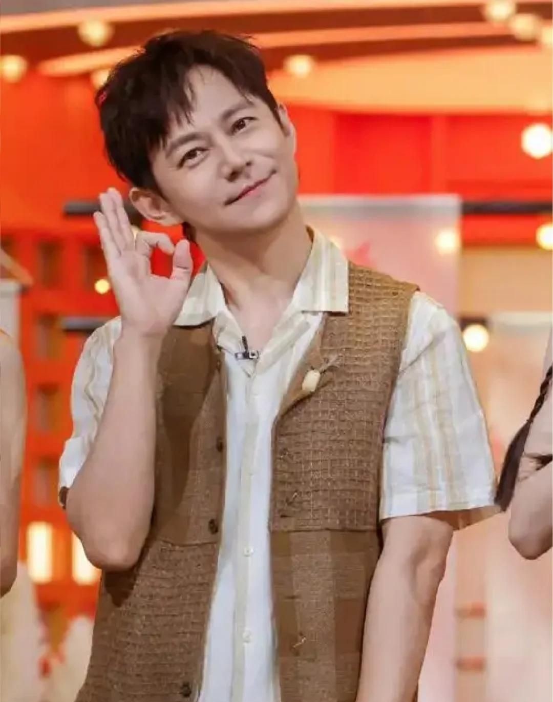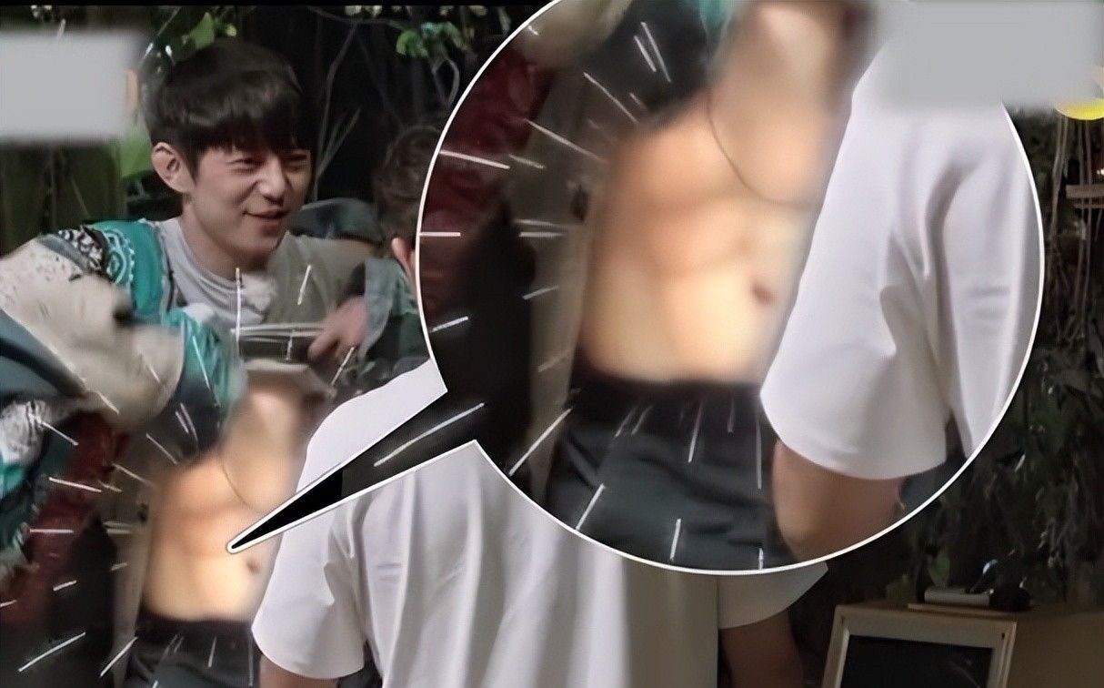 47. 年初某档综艺录制中,因意外被水溅湿衣物,他顺手掀起上衣擦拭,瞬间露出若隐若现的腹肌轮廓。